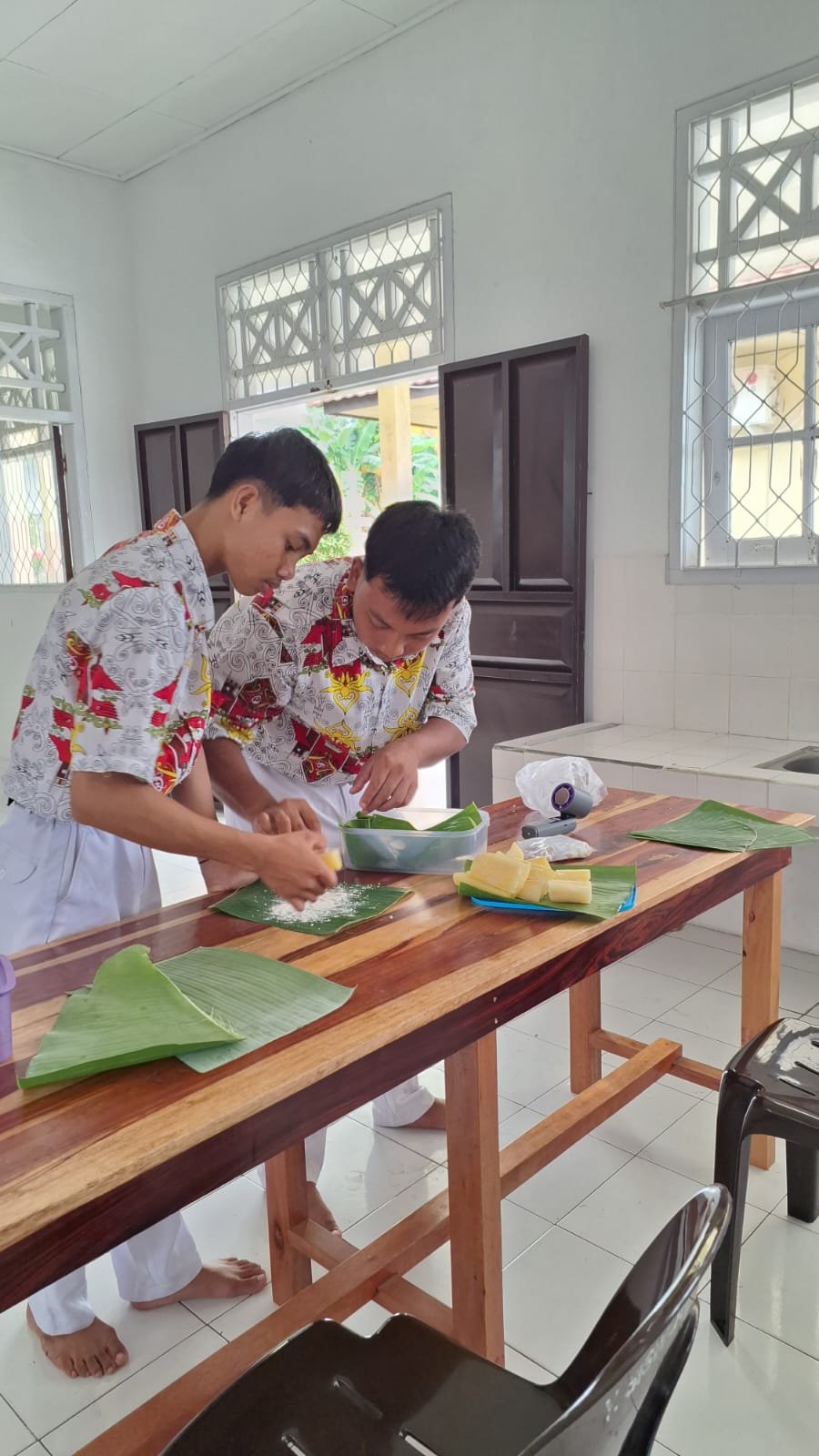Kegiatan ini bertujuan agar siswa memahami peran mikroorganisme, khususnya jamur Saccharomyces cerevisiae yang terkandung dalam ragi, dalam mengubah karbohidrat menjadi gula dan alkohol. Dengan teliti, siswa melewati setiap tahapan: mulai dari mengupas singkong, mengukus, mendinginkan, hingga proses pemberian ragi yang harus dilakukan dengan sangat higienis.
