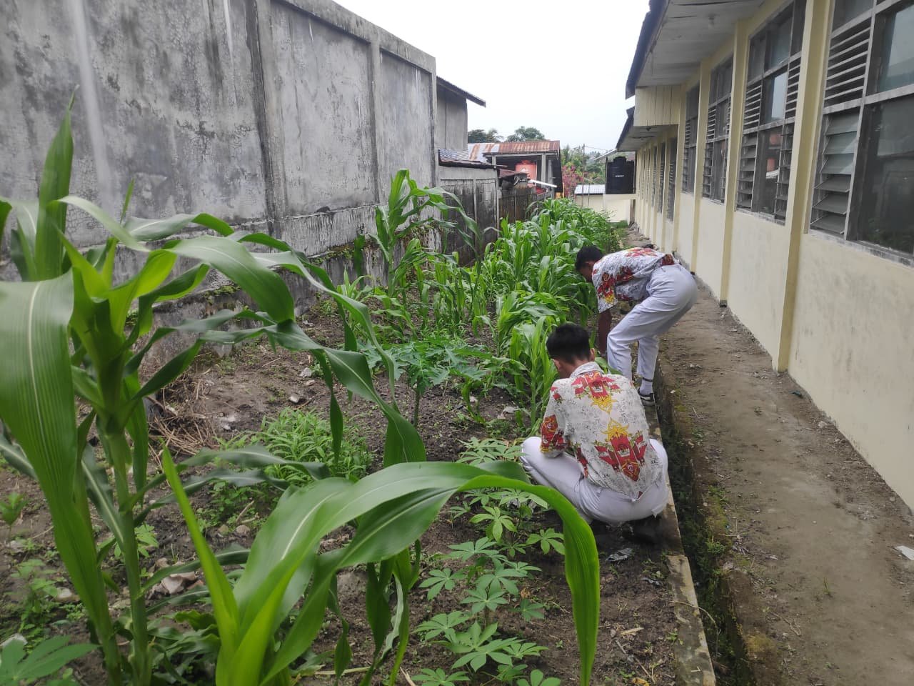 Ada pemandangan yang menyegarkan mata di area belakang SMAS Katolik Santo Aloysius Gonzaga Pangkalan Bun. Area pekarangan sekolah yang tadinya berupa lahan kosong kini perlahan berubah menjadi hamparan hijau yang produktif. Para siswa bersama dewan guru dan para Bruder bergotong royong menyulap lahan tidur tersebut menjadi kebun sayur dan buah-buahan.