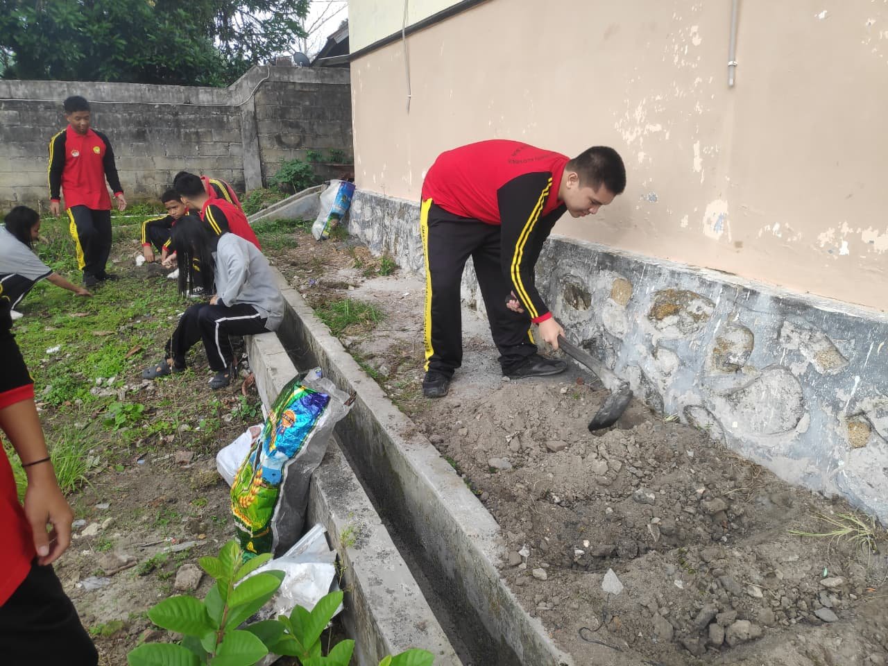 Pada Jumat hari ini, fokus kegiatan kerja bakti diarahkan pada pembersihan area pekarangan di sekitar laboratorium sekolah. Seluruh siswa bersama dewan guru dan para Bruder bahu-membahu membersihkan rumput liar, menyingkirkan ranting kering, dan meratakan tanah.